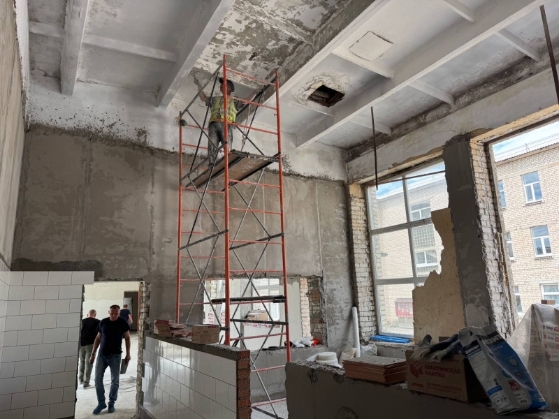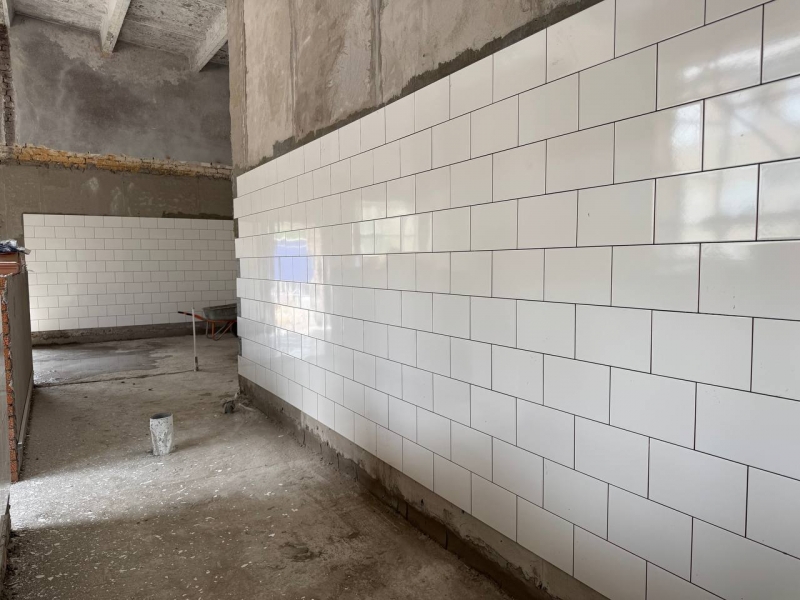 - На сегодняшний день в пищеблоке демонтированы старые перегородочные стены, которые заменим гипсокартоновыми перегородками. Выполнены подготовительные работы и уже начаты работы по чистовой отделке и поклейке плитки. На ряду с этим, продолжаются работы по прокладке инженерных коммуникаций, - отметил заместитель генерального директора ООО «Строй-Крафт» Геннадий Валуйский.