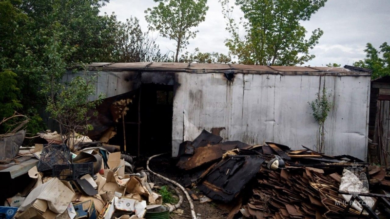Огнем повреждена обшивка бытовки на 18 квадратах.