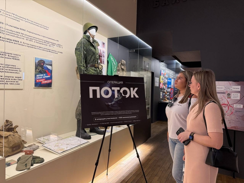 Молодёжь Славяносербского муниципального округа посетила выставку «Поток» в Луганском краеведческом музее. Экспозиция посвящена уникальной военной операции, в ходе которой штурмовой отряд прошёл более 15 км по трубопроводу диаметром 140 см и внезапно вышел в тыл противника у Суджи.На выставке представлены фотографии, личные вещи бойцов и элементы экипировки.