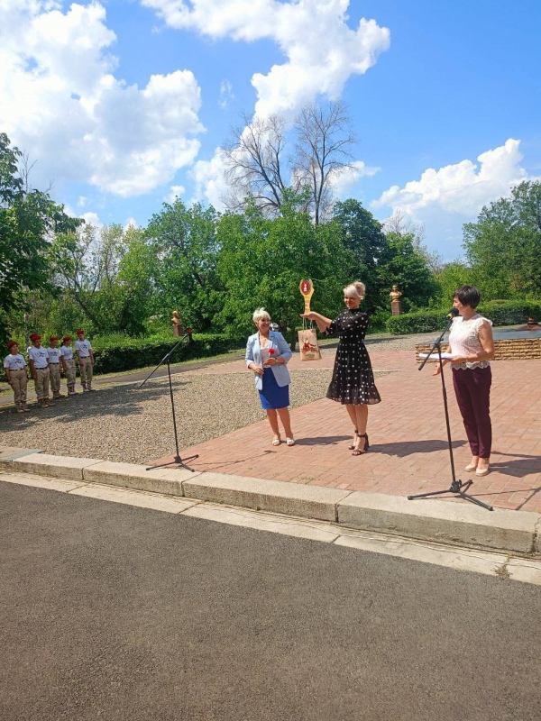 Председатель Совета Славяносербского муниципального округа ЛНР, заместитель Секретаря Славяносербского местного отделения всероссийской политической партии «Единая Россия» Антонина Гречишкина приняла участие в торжественной церемонии передачи «Венка Славы».