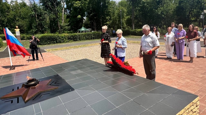 Участники церемонии почтили память павших в годы Великой Отечественной войны минутой молчания и возложили цветы к Огню Памяти.