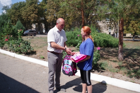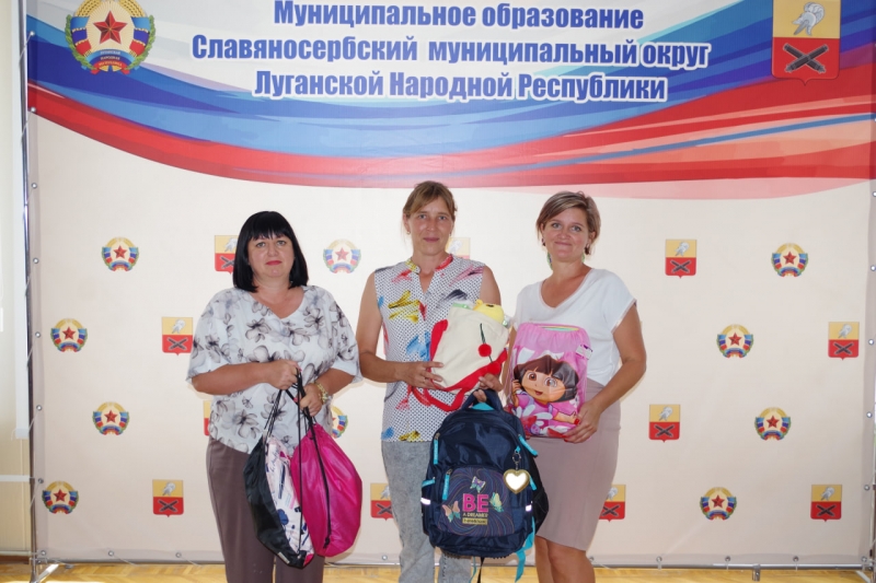 В преддверии нового учебного года Глава муниципалитета Сергей Крамаренко совместно с советом женщин при Администрации Славяносербского муниципального округа передали канцелярские принадлежности и рюкзаки детям погибших участников специальной военной операции и семьям участников СВО, взявших детей под опеку.