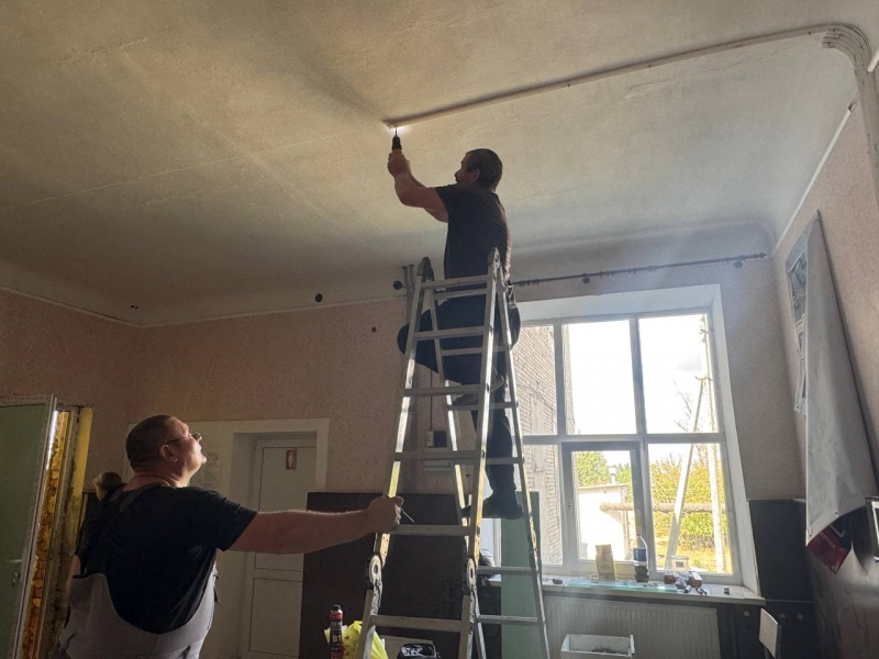 Подрядная организация ООО «Высота» продолжает ремонтно-восстановительные работы в Лозовской вечерней (сменной) средней школе в рамках подписанного соглашения о сотрудничестве с регионом-шефом Алтайским краем.