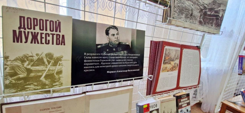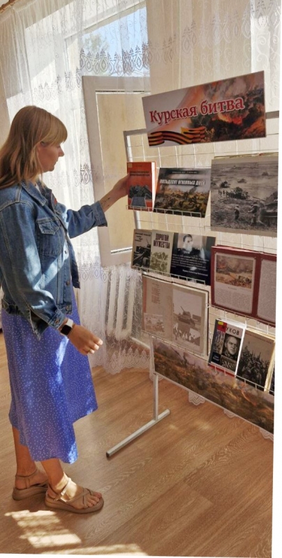 Также работниками библиотеки была подготовлена выставка «Пятьдесят огненных дней», цитатой которой послужили слова маршала А. Василевского: «Крупное поражение на Курской дуге явилось для немецкой армии началом смертельного кризиса».