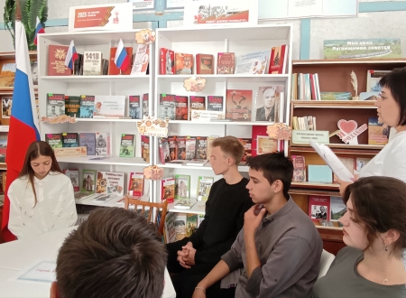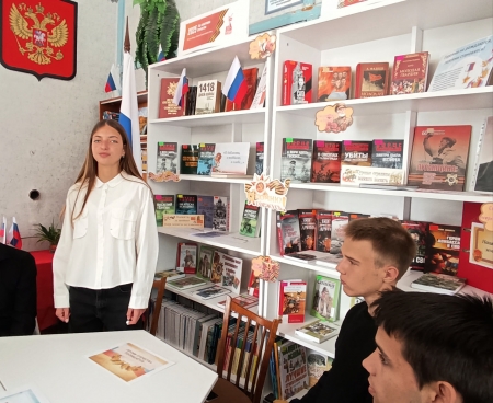В библиотеке была развёрнута тематическая книжная выставка, посвящённая героическому прошлому родного края, героям Великой Отечественной войны и героям специальной военной операции, проявившим мужество, решительность и храбрость во имя Родины.