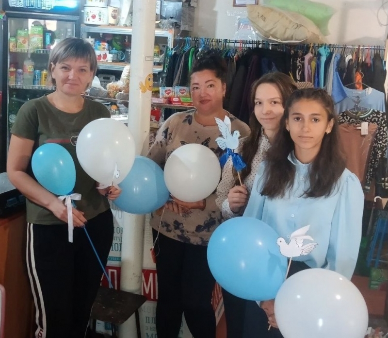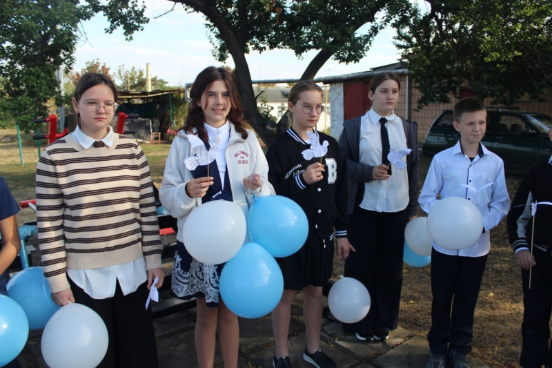 После линейки ребята разделились на три группы. Старшеклассники направились в детский сад, чтобы рассказать о Дне мира самым юным односельчанам, а младшие школьники поздравили желтян на улицах села. С пожеланиями мира они дарили всем от мала до велика воздушные шары и бумажных голубей.