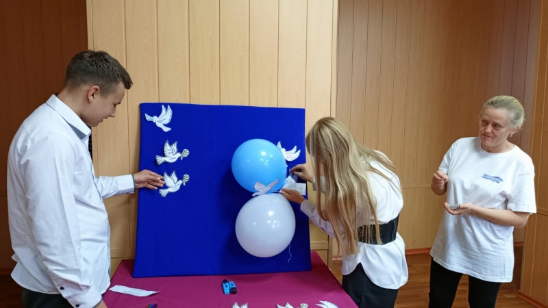 - Вместе с ведущими ребята дали определение слову «мир». В их понимании мир - это спокойная жизнь, радость, душевное тепло, улыбки детей и матерей, жизнь без слёз и утрат, без разрухи и голода, без войны. Еще школьникам рассказали об истории и причинах возникновения Дня мира, о Колоколе Мира и главном символе – белом голубе с оливковой ветвью в клюве, - рассказала Сопредседатель местного совета сторонников Татьяна Пинькова.