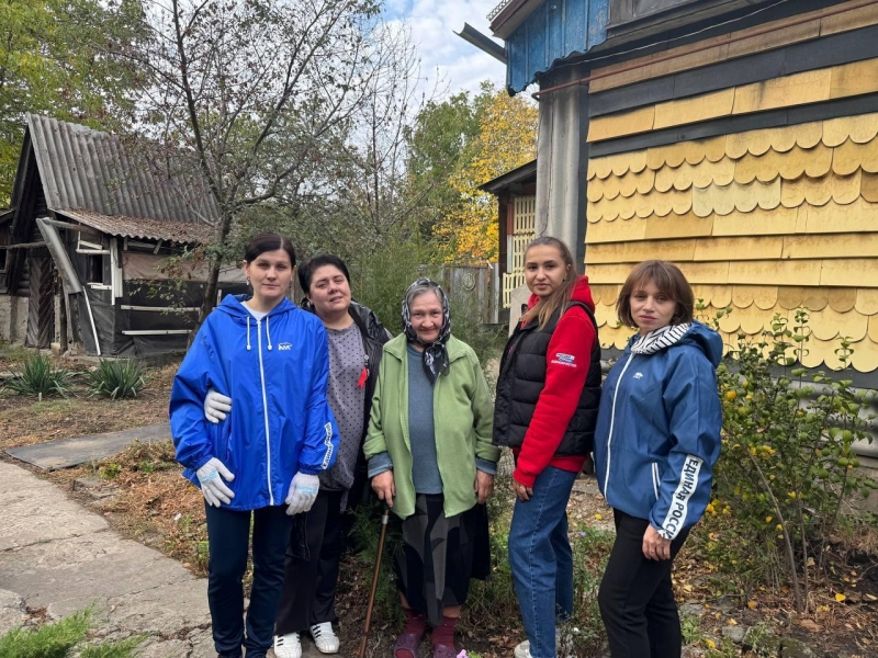 В Кировске единороссы посетили пенсионерку Людмилу Давыдову и помогли ей привести в порядок придомовую территорию, убрав опавшую листву.