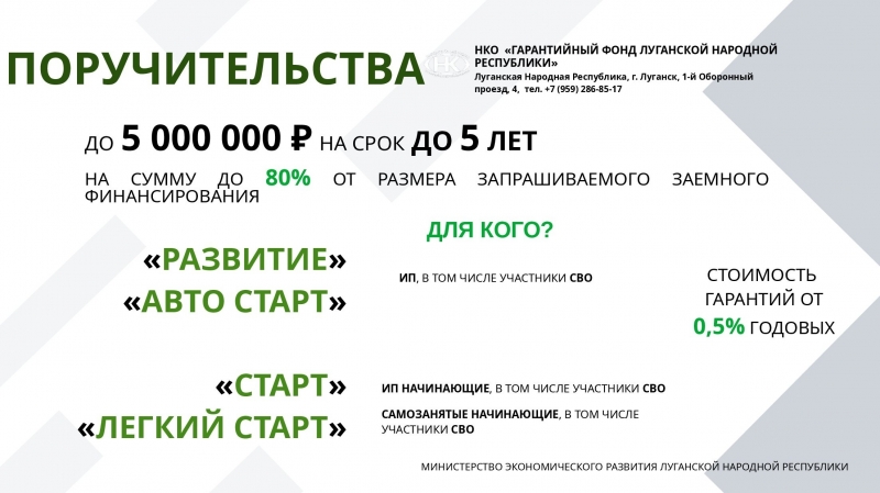 Министерство экономического развития Луганской Народной Республики сообщает, что в рамках мер, направленных на поддержку малого и среднего предпринимательства создана инфраструктура поддержки субъектов МСП в республике, в виде некоммерческих организаций.