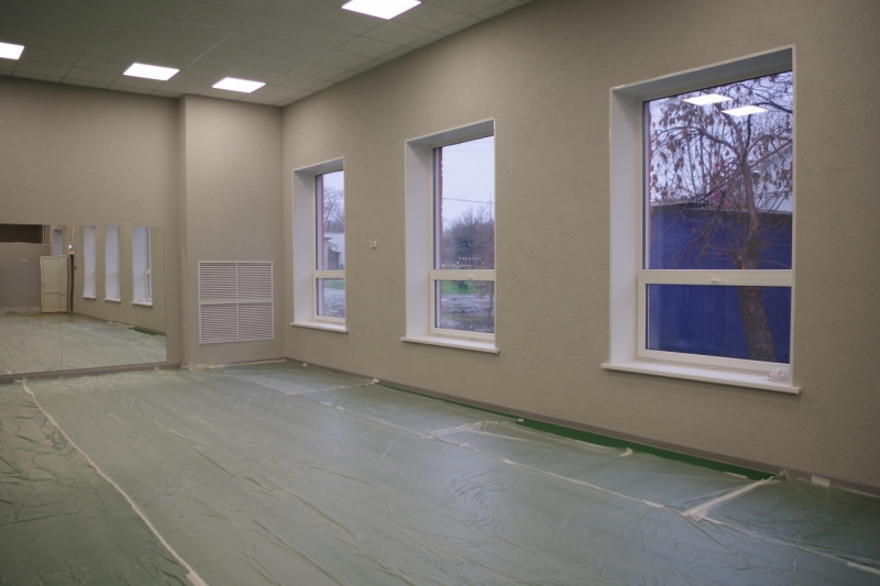 На месте старого здания теперь фактически новое: с прочной железобетонной крышей, современными залами, раздевалками и душевыми. Строители провели полную модернизацию. Заменили все инженерные сети отопление, электрику, водоснабжение, вентиляцию, утеплили здание и привели в порядок фасад, установили новые окна и двери, выполнили внутреннюю отделку.