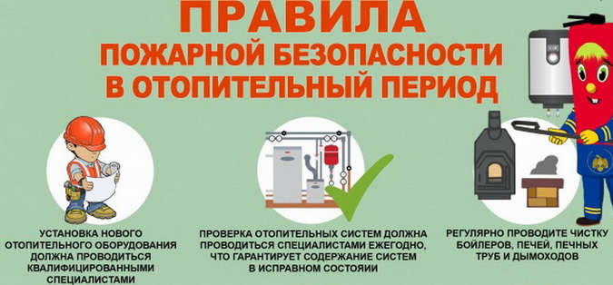 Перед началом эксплуатации печи и другие отопительные приборы должны быть проверены и отремонтированы. Печи должны иметь установленные нормами противопожарные разделки (отступки) от горючих конструкций, а также без прогаров и повреждений. Предтопочный лист должен иметь размер не менее 0,5 х 0,7 метров.