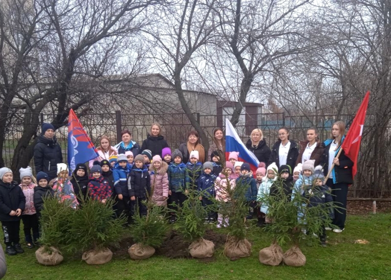 На территории ГБДОУ ЛНР «Родаковский ясли-сад «Рябинушка» состоялось торжественное мероприятие, в котором приняли участие воспитанники детского сада, отряд юных «Орлят-дошколят», учащиеся Родаковской средней школы, участники движения «Движение Первых», а также сотрудники дошкольного учреждения. Они вместе высадили ель на Аллее славы, посвященной нашим защитникам.
