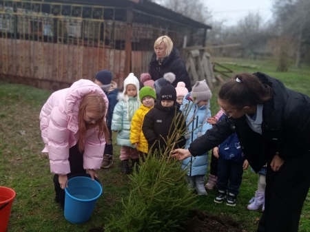 Теперь на территории детского сада будут расти маленькие, пушистые елочки, которые вызвали восторг у дошкольников. Дети с радостью рассматривали деревья и уже начали водить вокруг них хоровод, проявляя свою детскую непосредственность.