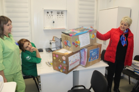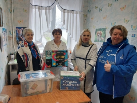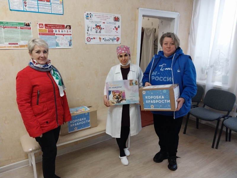 В рамках акции «Коробка храбрости» заместитель Секретаря Славяносербского местного отделения «Единой России», Председатель Совета округа Антонина Гречишкина и исполнительный секретарь отделения Партии Светлана Мовчан передали для детей призы за смелость в кабинеты участковых педиатров амбулаторий общей практики семейной медицины в поселках Родаково, Лозовский и Лотиково, кабинет участкового педиатра с дневным стационаром педиатрического профиля Зимогорьевской городской больницы.