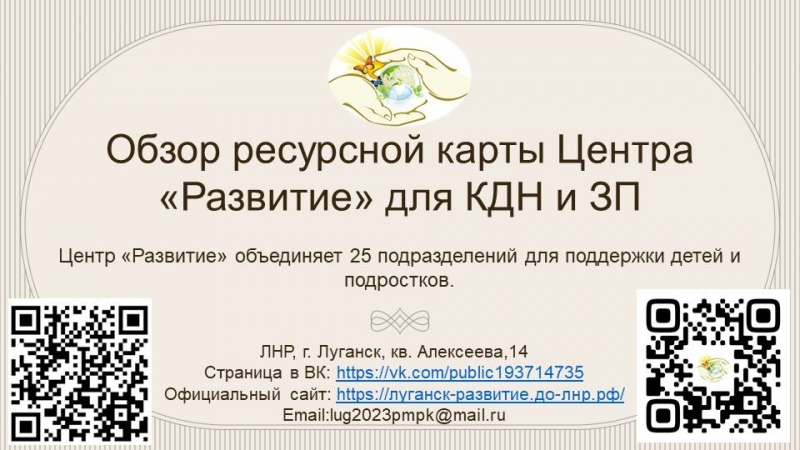 Комиссия по делам несовершеннолетних и защите их прав муниципального образования Славяносербский муниципальный округ информирует несовершеннолетних, родителей (законный представителей) о контрактных данных Центра "Развитие"