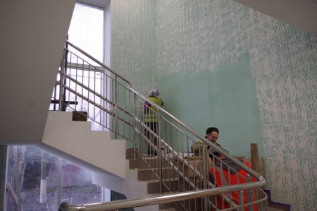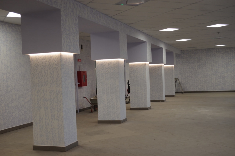 В текущем году подрядчик приступил к работам внутренних помещений, а именно: капитальный ремонт цокольного этажа, в котором размещены санузлы, центральная лестничная клетка с подвала до второго этажа с установкой ограждений, произведены капитальный ремонт фойе и холлов первого этажа, фойе второго этажа, малый зал, кабинет директора, в ходе проведения работ, полностью произведена замена системы освещения, розеточной сети, системы ОПС, СОУЭ, замена всех внутренних дверей, главная входная группа крыльцо, пандус, козырек, ограждение, замена дверной группы входа, работы в стадии завершения, плановый срок завершения до 20 декабря.