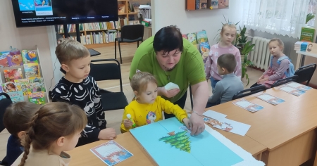 Также сотрудники библиотеки провели с детьми игры и мастер-класс по созданию огромной новогодней композиции.