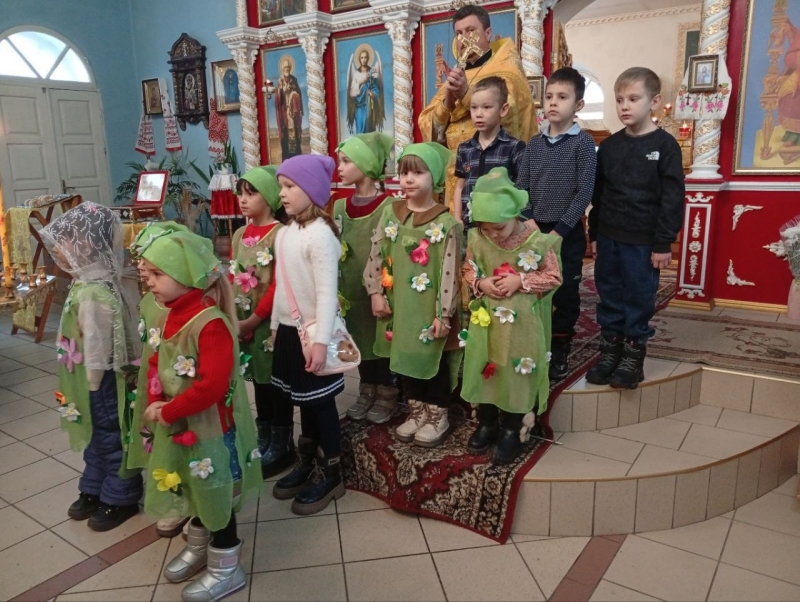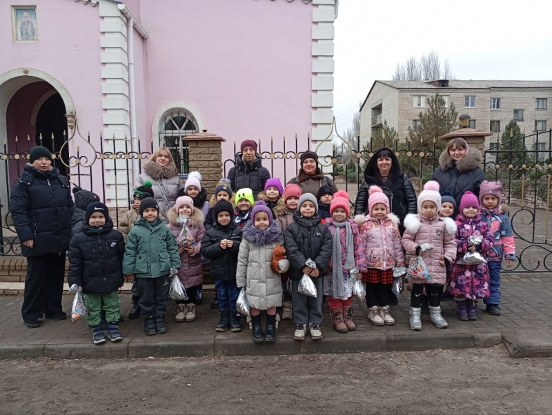 По сложившейся традиции дети старшей и подготовительной групп вместе с воспитателями посетили Храм священномученика Владимира, митрополита Киевского в посёлке Родаково. В храме детей тепло встретили прихожане храма, которые присутствовали на праздничной службе. В ходе литургии дети рассказали поздравительные стишки, за которые ребята, были поощрены подарками.