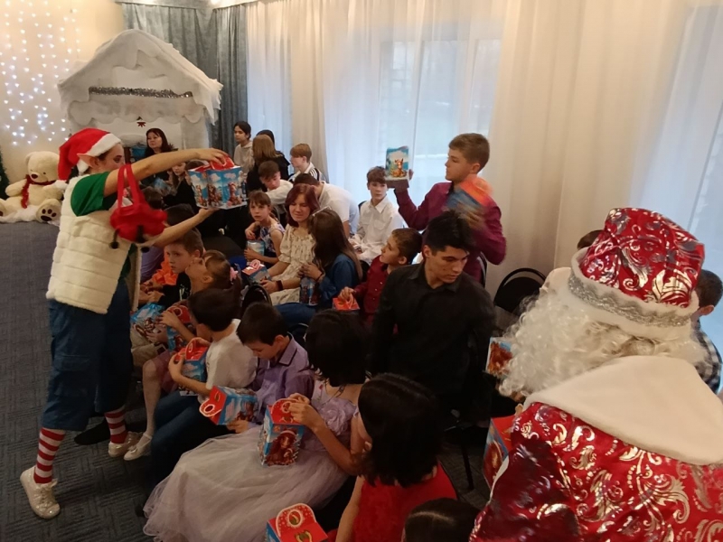 В завершение мероприятия каждому ребенку был вручен долгожданный сладкий подарок, символизирующий щедрость и милосердие Николая Святителя, собранных в рамках акции «Сладости для радости» от организаций Славяносербского муниципалитета.
