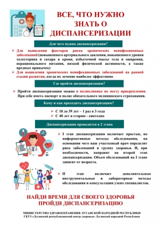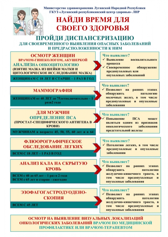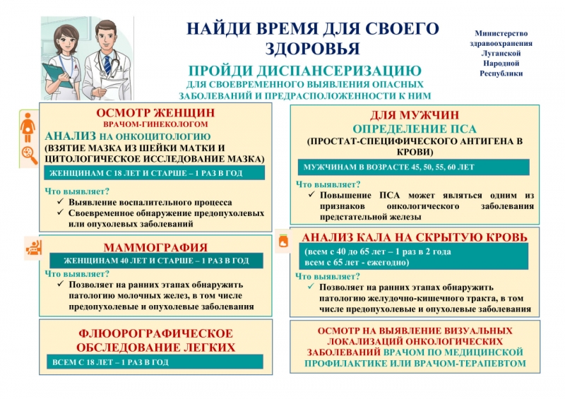 Министерство здравоохранения Луганской Народной Республики рассказывает о пользе прохождения профилактических осмотров и диспансеризации