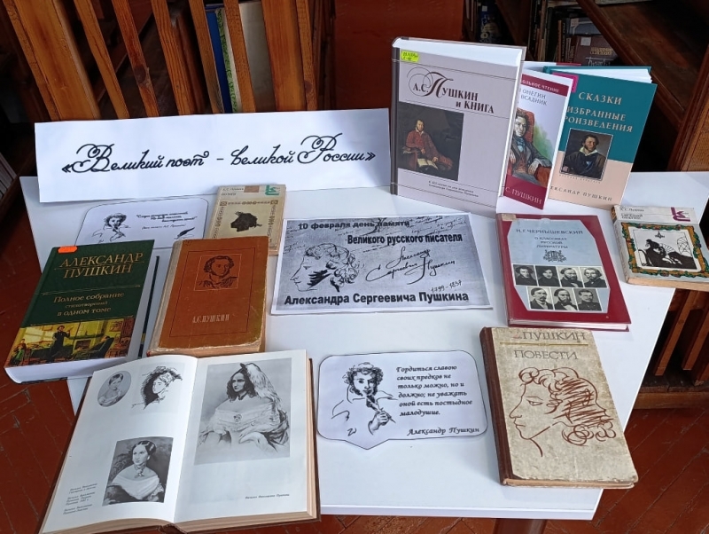 Веселогорская библиотека-филиал №17 совместно с сельским клубом организовала выставку «Книжный мир Александра Сергеевича Пушкина».