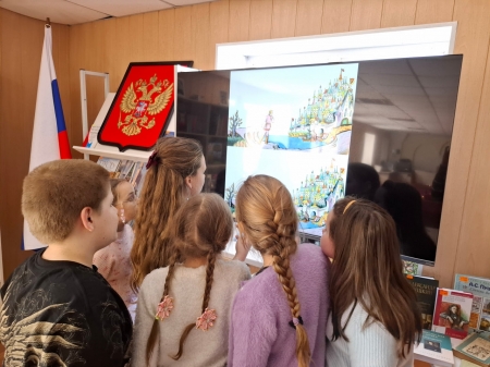 Желтенская библиотека-филиал №12 пригласила ребят на тематический час «Пушкин на все времена», где видеосюжет помог познакомиться с яркими фактами из жизни поэта и богатством его творчества.