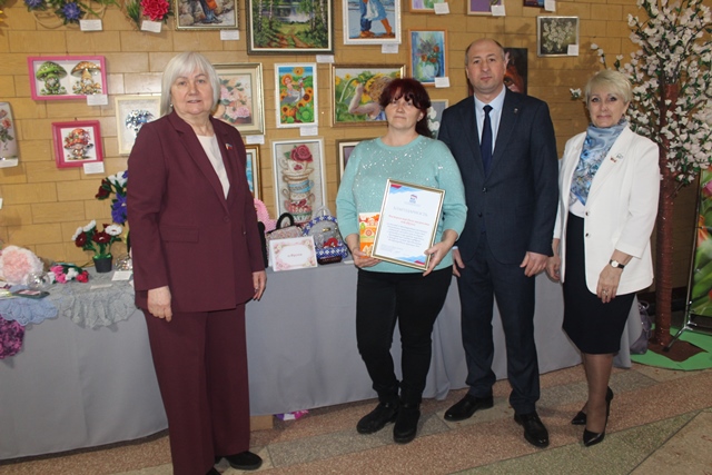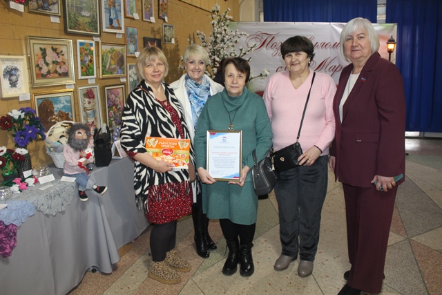 Партийцы поздравили с Международным женским днем коллективы мастериц, принявших участие в выставке работ декоративно-прикладного искусства в Центре культуры и досуга. Рукодельницы представили город Зимогорье, поселки Славяносербск, Лозовский, Родаково и Фрунзе, села Весняное, Желтое, Хорошее и Сабовка.