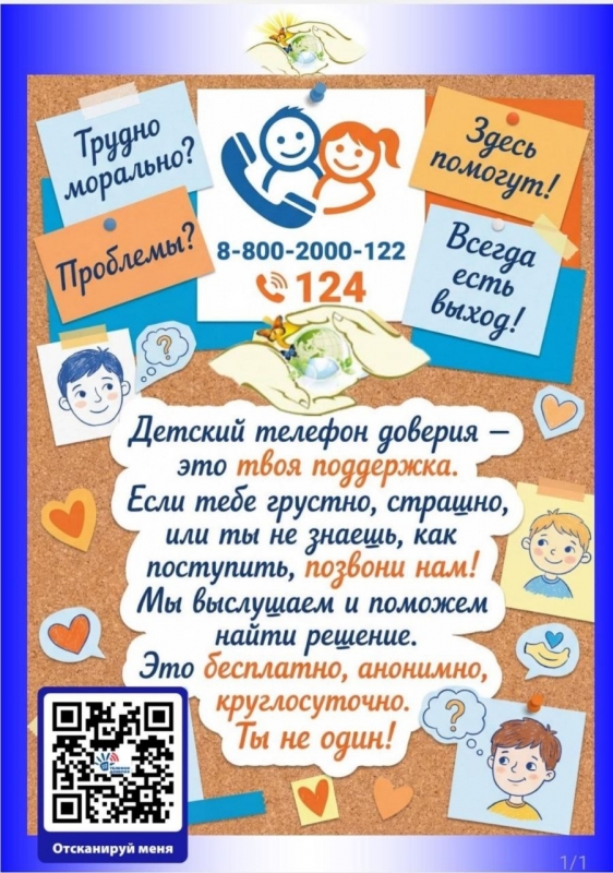 » Комиссия по делам несовершеннолетних информирует о телефоне доверия для детей, подростков и их родителей