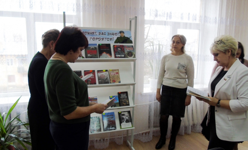 В дополнении к мероприятию сотрудниками МБУ Славяносербской ЦБ была организована книжно-иллюстрированная выставка « Вас помнят, вас знают, вами гордятся!».