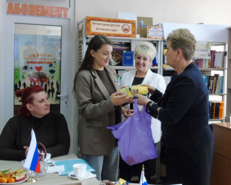 17 марта в Славяносербской центральной библиотеке состоялась встреча с жёнами участников Специальной военной операции. Встреча была организована в рамках Всероссийского проекта «Жены героев Алтайского края», руководителем которого является Лилия Луковкина.С приветственным словом к участницам обратилась Лилия Луковкина, которая отметила, что данный проект был представлен в разных городах и районах, и каждый раз организаторы стараются найти новый подход, привлекая к участию все больше участниц. «Цель нашего проекта, — отметила она, — заключается не только в поддержке боевого духа наших бойцов, но и в единении, сплочении их жен, в предоставлении им моральной опоры»